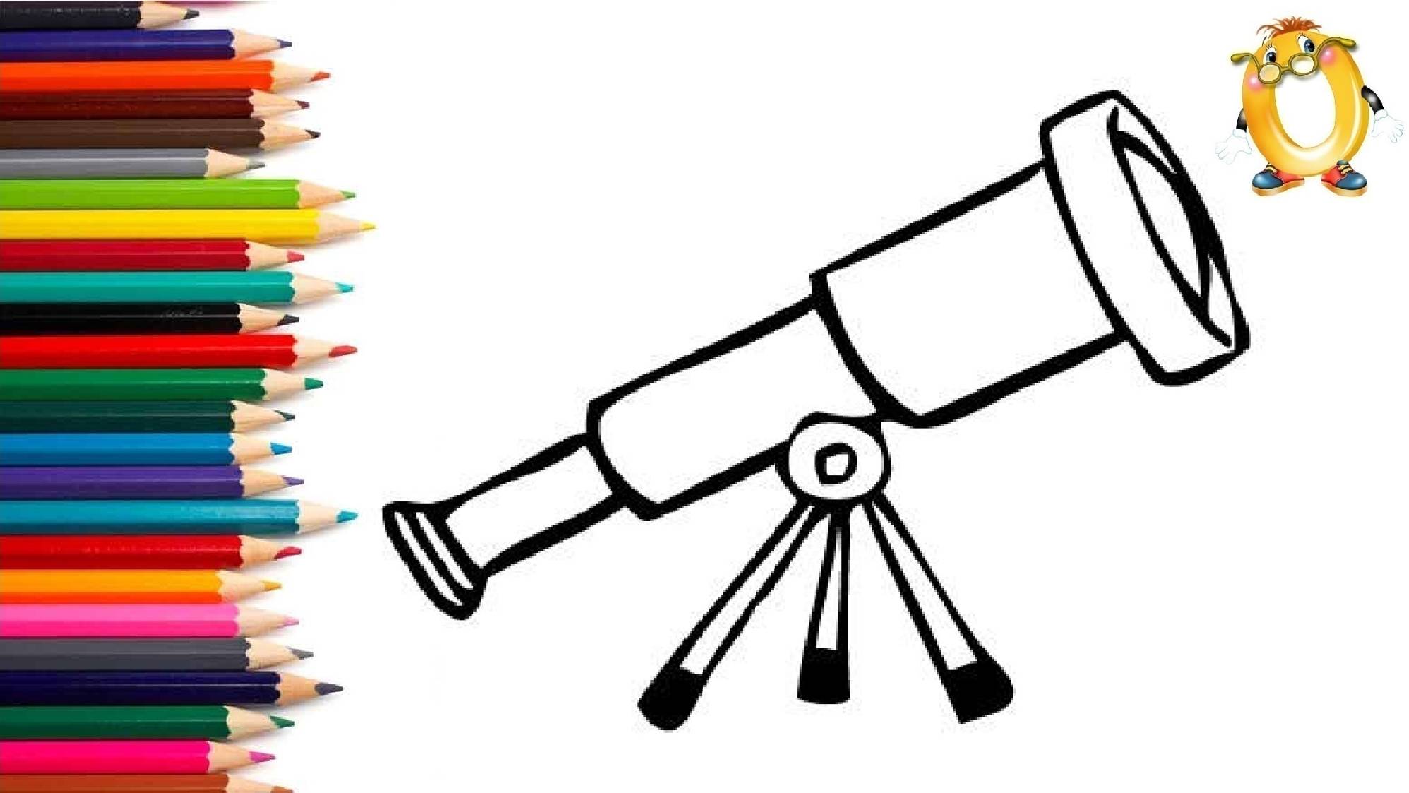 Мультик - раскраска для детей ТЕЛЕСКОП. Учимся как рисовать ТЕЛЕСКОП вместе с детьми // ОБУЧАШКА ТВ