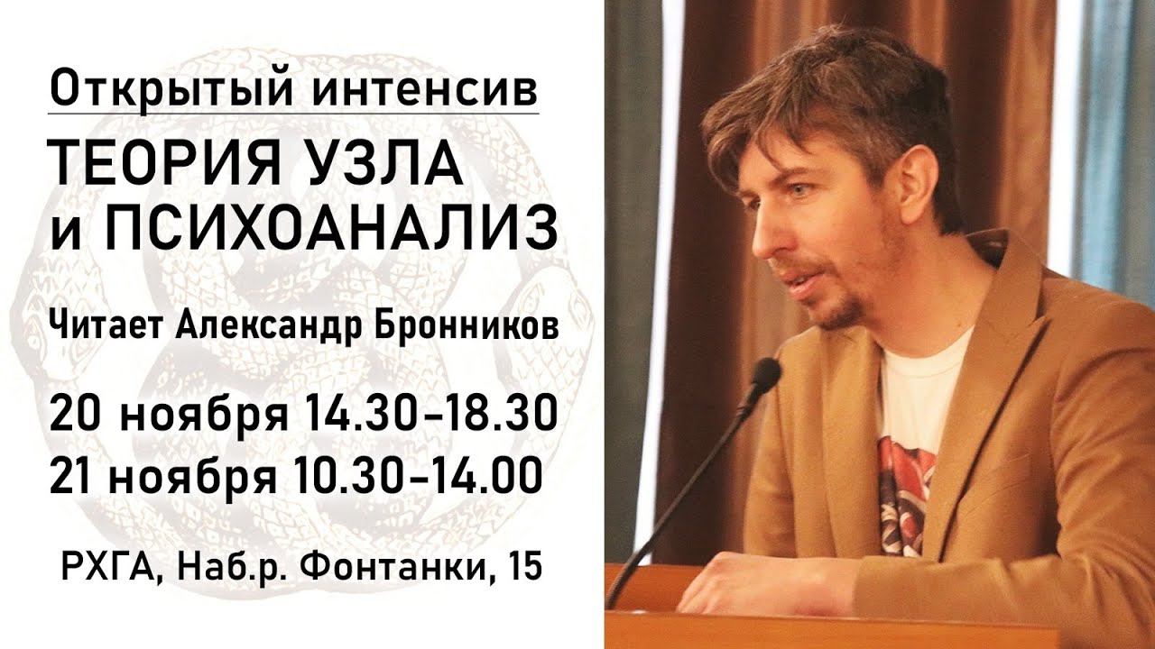 ОТКРЫТЫЙ ИНТЕНСИВ Теория узла и психоанализ Читает: Александр Бронников 20 ноября 14.30-18.30 21 ноября 10.30-14.00