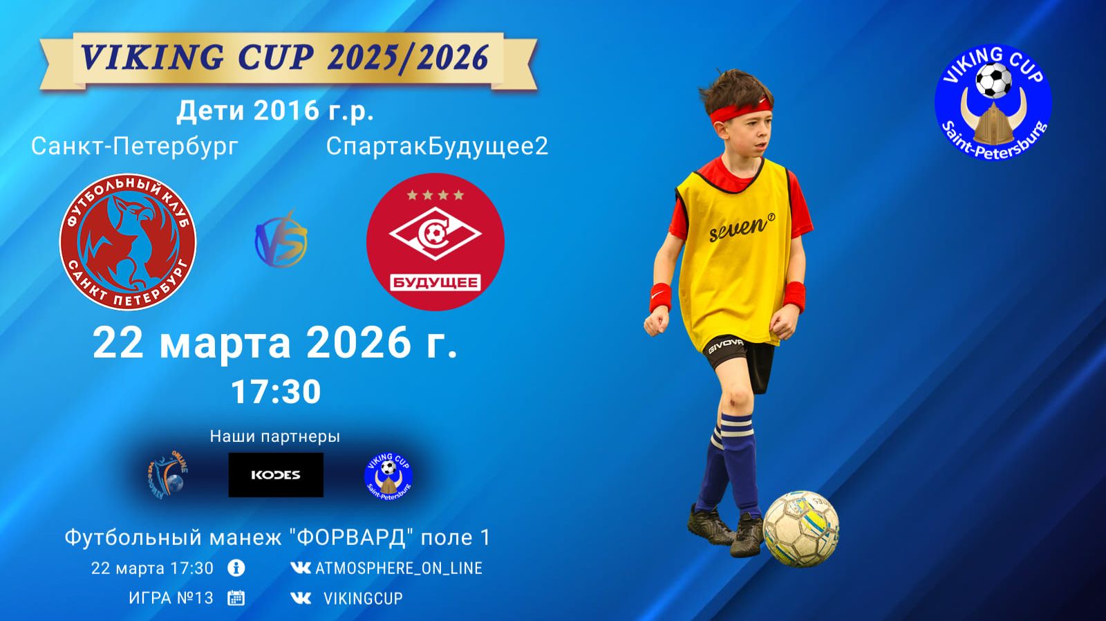 VIKING CUP среди команд 2016 г.р. (U10), Поле 1 22 марта 2026 САНКТ-ПЕТЕРБУРГ, ФЦ "Форвард" СанктПетербург-СпартакБудущее2/VIKING CUP, Игра №13, 22-03-2026 17:30
