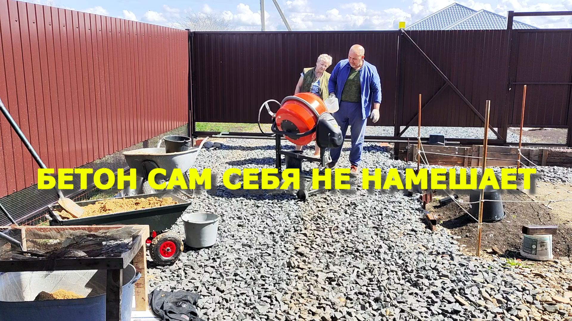 На Юг, Краснодарский край, Все сами, Своими руками, Мешаем бетон, Укрепляем ворота, Нестабильное напряжение.