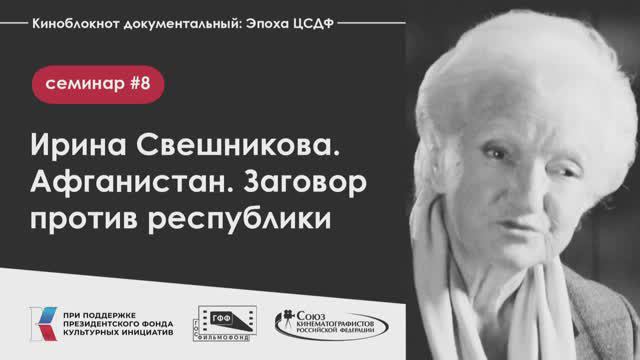 Проект создан при поддержке Президентского фонда культурных инициатив (ПФКИ) Подкаст «Ирина Свешникова. Афганистан. Заговор против республики». Записан на семинаре «Киноблокнот документальный: Эпоха ЦСДФ» 18 мая 2024 года в Малом зале Центрального Дом кино. В семинаре принимают участие: - кинорежиссер Ирина Свешникова (в записи); - кинорежиссер Ольга Чекалина. Ведет семинар руководитель проекта Андрей Истратов. Использования фрагменты фильмов: - Заговор против республики (ЦСДФ, 1980) Приятного просмотра.