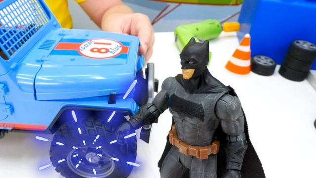 Железный Человек помогает чинить машинки игрушки. Бэтмен получает джип! Супергерои в Автомастерской