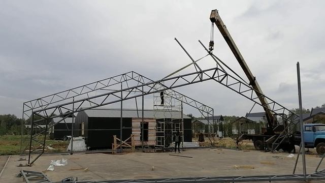 Каркасно-тентовый ангар 18х48. Сборка каркаса