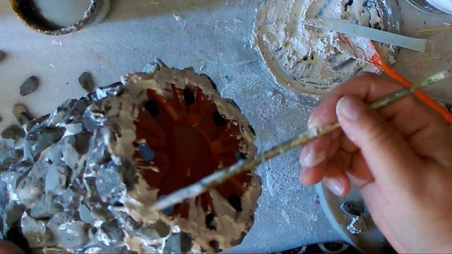Декорированное кашпо из камней своими руками