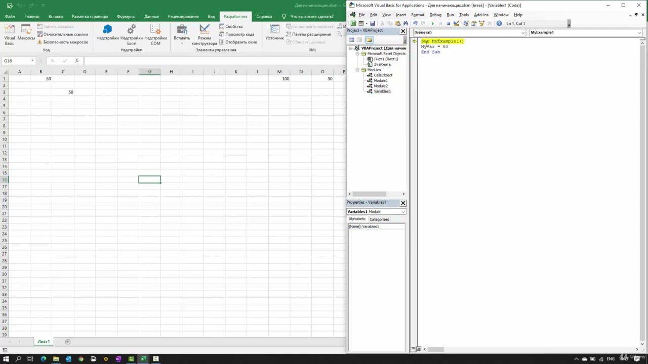 Введение в переменные. Переменные. Программирование макросов в Excel.