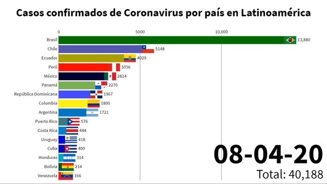 6 - Casos confirmados de Coronavirus por país en Latinoamérica hasta el 19 de Mayo