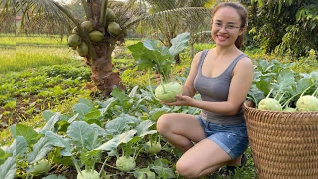 Собираю кольраби и грибы в саду, чтобы продать на рынке. Энн. Жизнь во Вьетнаме
