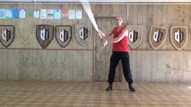 Наработка на воздухе и снарядах базовых координационных комбинаций с парным оружием, основанных на схеме горизонтальной восьмёркообразной траектории.