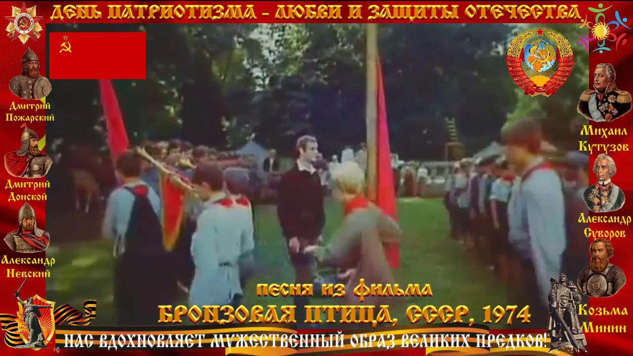 Ты гори , мой костер муз: С.Пожлаков, сл. Булата Окуджава. Что легенды нам о боге, Если бы не мы с тобой. Наши боги - две дороги, Что ведут в последний бой. Припев: Барабан старается, Трубач играет сбор, И нет среди нас белоручек. Ты гори, гори мой костер, Мой товарищ, мой друг, мой попутчик. Ты гори, гори мой костер, Мой товарищ, мой друг, мой попутчик. Кто куда, а мы лишь прямо Через мрак на свет костра. Прощай папа, прощай мама, Прощай младшая сестра. Припев: Пламя разгорается На весь земной простор, И первыми время нас учит. Ты гори, гори мой костер, Мой товарищ, мой друг, мой попутчик. Ты гори, гори мой костер, Мой товарищ, мой друг, мой попутчик. СССР, 1974 СПОРТИВНО-ПАТРИОТИЧЕСКОЕ ДВИЖЕНИЕ "ДРУЖБА" https://vk.com/sport.patriot.drujba Созданию фильма оказывали содействие: Общероссийская общественная организация «Офицеры России» (ООО "ОФИЦЕРЫ РОССИИ"); Военный университет Министерства обороны Российской Федерации (ВУ МО РФ); Региональная общественная организация ветеранов Центрального аппарата органов внутренних дел (РООВ ЦА ОВД); Федеральная служба по контролю за оборотом наркотиков (ФСКН); Международный фонд славянской письменности и культуры; Парламентский центр «Комплексная безопасность Отечества» (ПЦ "КБО"); Совет ветеранов "ШАБОЛОВКА 6"; Межрегиональная общественная организация «Легендарный подвиг»; Межрегиональная общественная организация «Кремль» (МРОО "КРЕМЛЬ"); Академия национальной безопасности, обороны и правопорядка; Фонд ветеранов защитников Отечества "МЕЧ" (Фонд ВЗО "МЕЧ"); Межрегиональная общественная организация содействия развитию страйкбола "Федерация Страйкбола"; Агентство конкурентной разведки и экономической безопасности "Паутина"; Федерация Русского Боевого Искусства - Российская Отечественная Система Самозащиты (ФРБИ РОСС); Военно-спортивный клуб имени Александра Невского; Бюджетное учреждение Молодёжный центр "Маяк" (БУ МЦ "МАЯК"); Детско-юношеский клуб "Энергия" (ДЮК "ЭНЕРГИЯ"); Дайвинг центр АКВА-ГЛОБУС. #ПАТРИОТИЗМ #НашПатриотизм #РоссияВперёд #БессмертныйПолк #ЗОЖ #СПОРТ #МойВетеран #ВотМойГерой #РоднойГерой #МыПомним #Россия #ПАТРИОТ #Победа #9МАЯ #СПАСИБОДЕДУЗАПОБЕДУ #70летПобеды #ДеньПобеды #Ура #НизкийПоклонВетеранам #МОЛОДЁЖНЫЙПАТРИОТИЗМ #ПАТРИОТИЗМВШКОЛЕ #ПАТРИОТИЗМВДЕТСАДУ СПОРТИВНО-ПАТРИОТИЧЕСКОЕ ДВИЖЕНИЕ "ДРУЖБА"