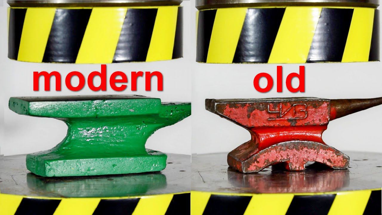 We will test the strength of two anvils, old and modern, with a hydraulic press. Which anvil will be stronger