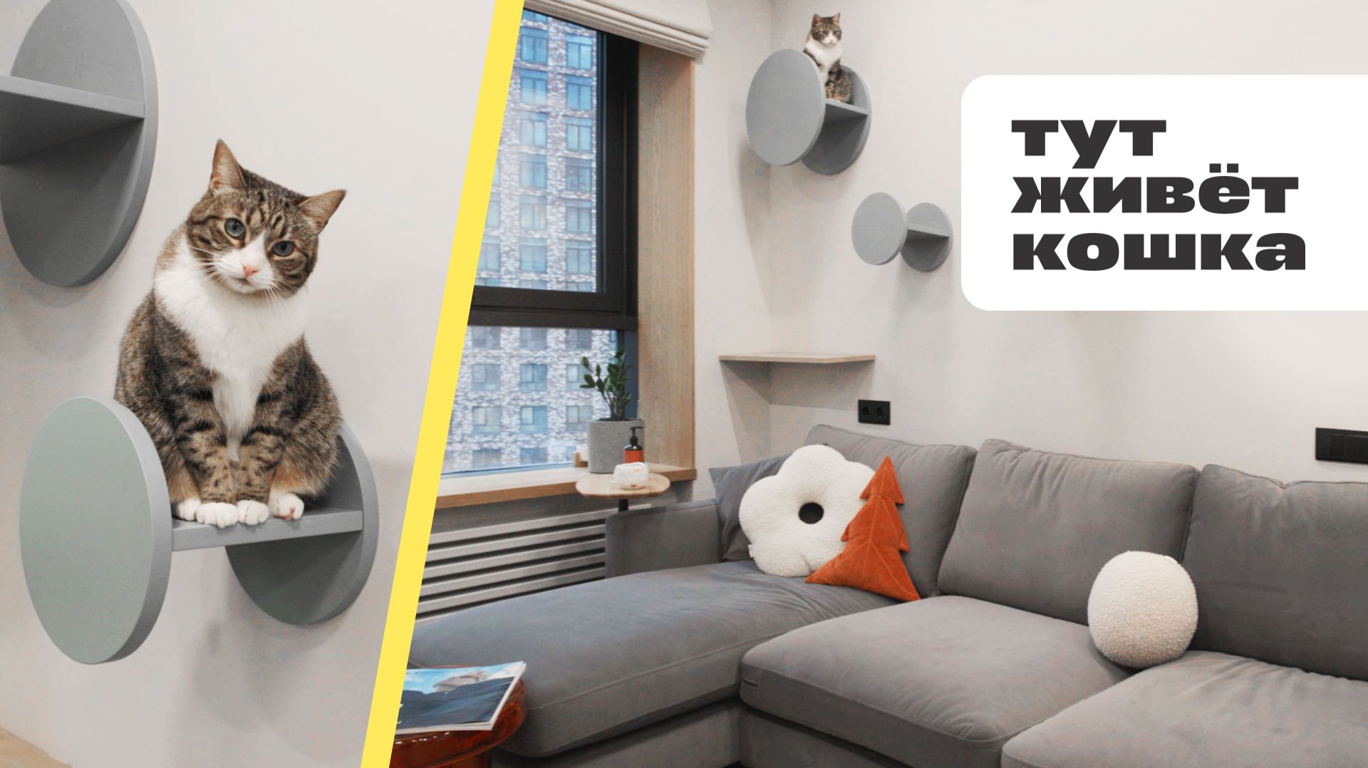 Ремонт на 47м²: комплекс для кошки и стена-скала