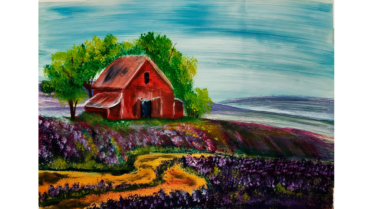 Как нарисовать летний пейзаж. Рисуем домик в деревне. Картина в стиле Прованс. Нарисуем поле лаванды