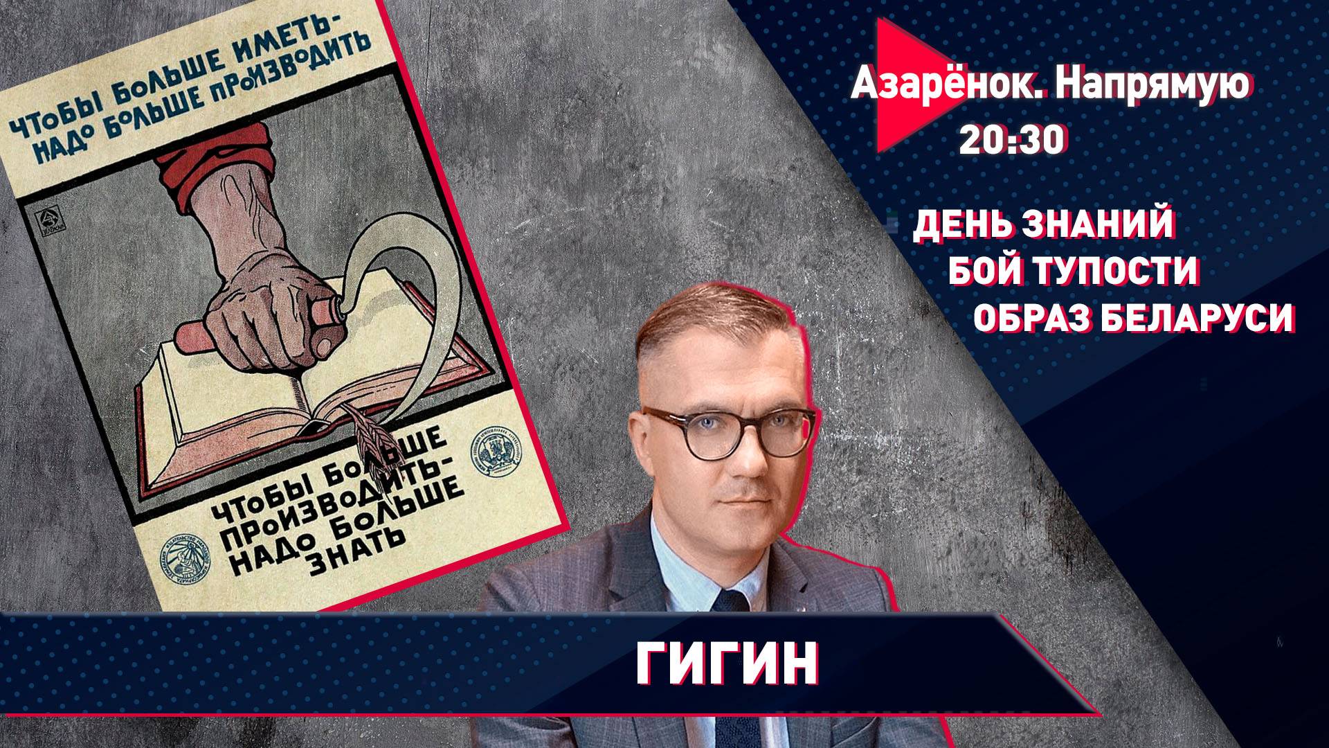 Присоединяйтесь к нашему Telegram-чату: https://t.me/+qTXxHkhwB6ZhOTIy 3 сентября в 20:30. Проект «Азарёнок. Напрямую». О важном говорим в прямом эфире. Вместе с экспертом обсудим встречу Александра Лукашенко со студентами Витебской области, как в Беларуси развивается сфера образования, злобу беглых и другие важнейшие международные события. В эфире депутат Палаты представителей Национального собрания Беларуси, генеральный директор Национальной библиотеки Беларуси, председатель правления Белорусского общества «Знание» Вадим Гигин. #азарёнок #лукашенко #гигин #беларусь #новости #политика #деньзнаний #школа #образование