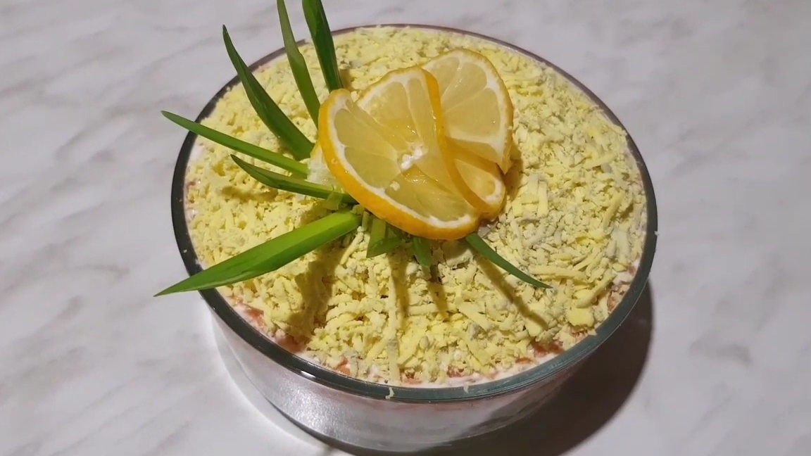 салат Мимоза с печенью трески