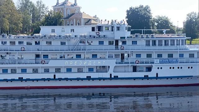 теплоход "Президент" в Угличе с теплохода "Генерал Лавриненков"