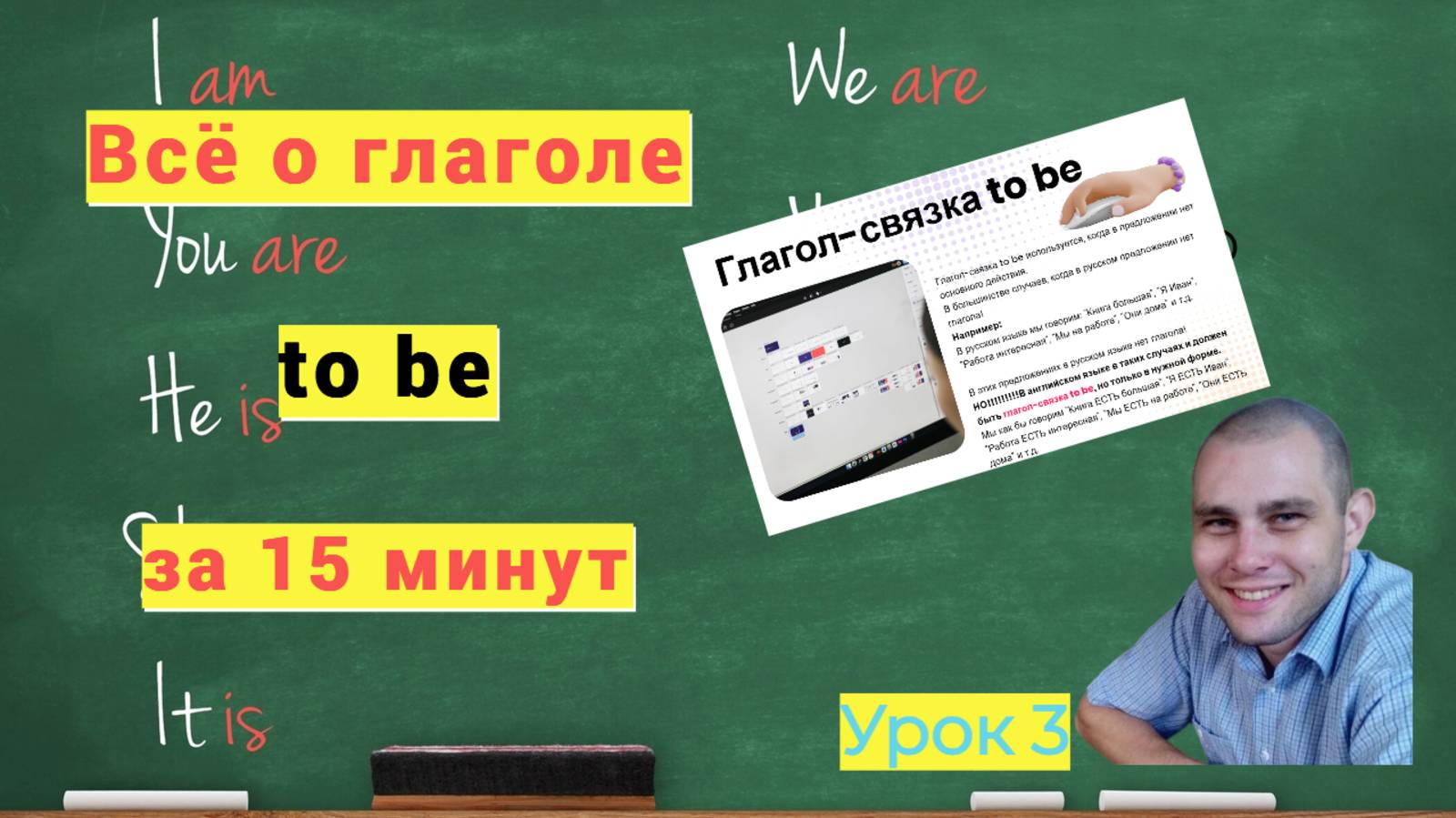 Всех приветствую! Меня зовут Иван, и я Ваш Учитель Английского. Сегодня мы разбираем супер важную тему - глагол-связка to be. Начнем с личных местоимений, затем разберём глагол to have по лицам и числам, и с 10:45 я расскажу всё самое важное о глаголе to be. На 13:33 я поделюсь главным правилом, которое нужно знать о глаголе to be. Тайм-коды: 00:00 - О важности этого урока 02:00 - Личные местоимения 04:58 - Глагол to have по лицам и числам 07:40 - Примеры с использованием глагола to have 10:45 - Глагол-связка to be 13:33 - Главное правило использования to be 14:32 - Примеры с использованием to be 16:41 - Формы глагола to be в настоящем времени 18:32 - Переводим предложения с to be с русского на английский Телеграмм-канал проекта «Ваш Учитель Английского» - https://t.me/englishteacherivan