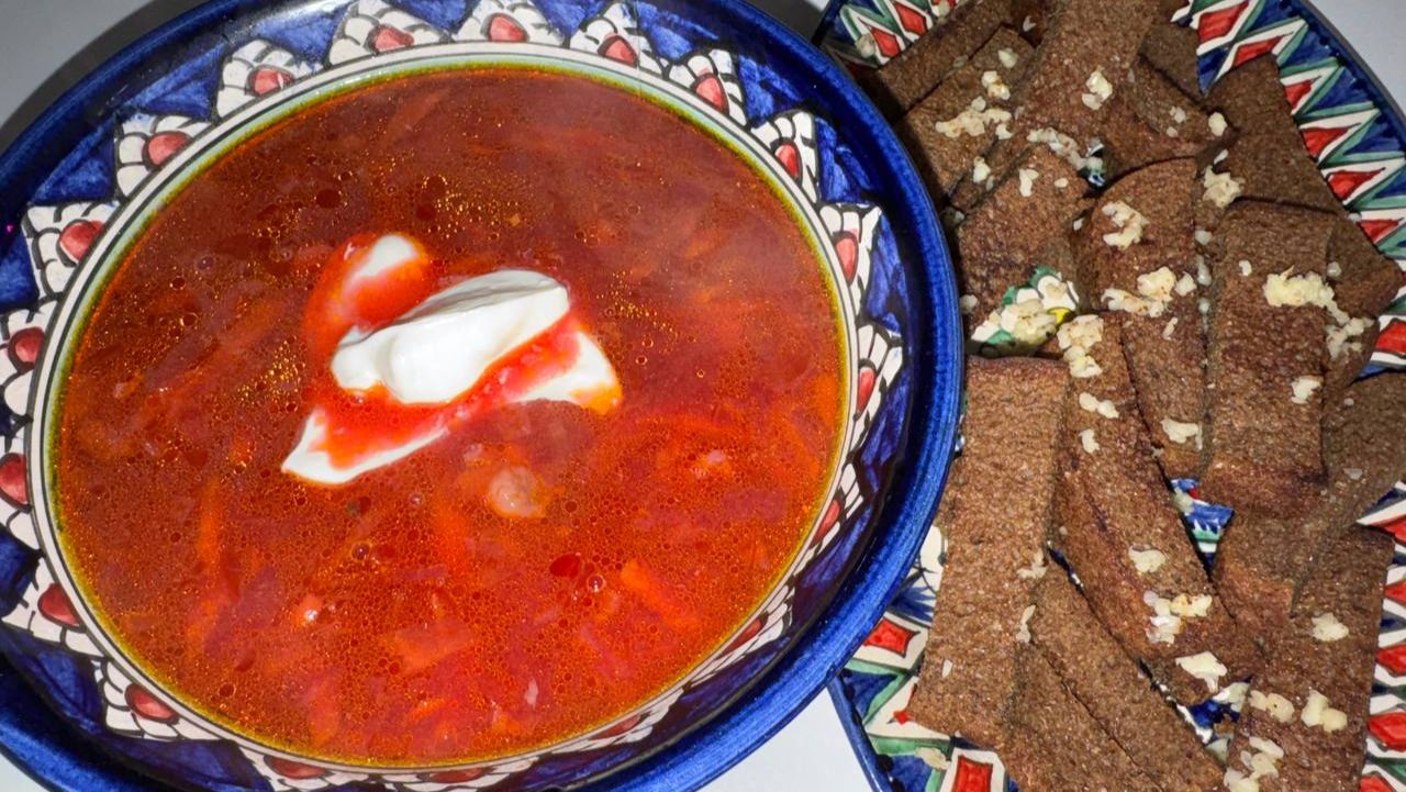 Сегодня борщ и гренки - вкусно и сытно.