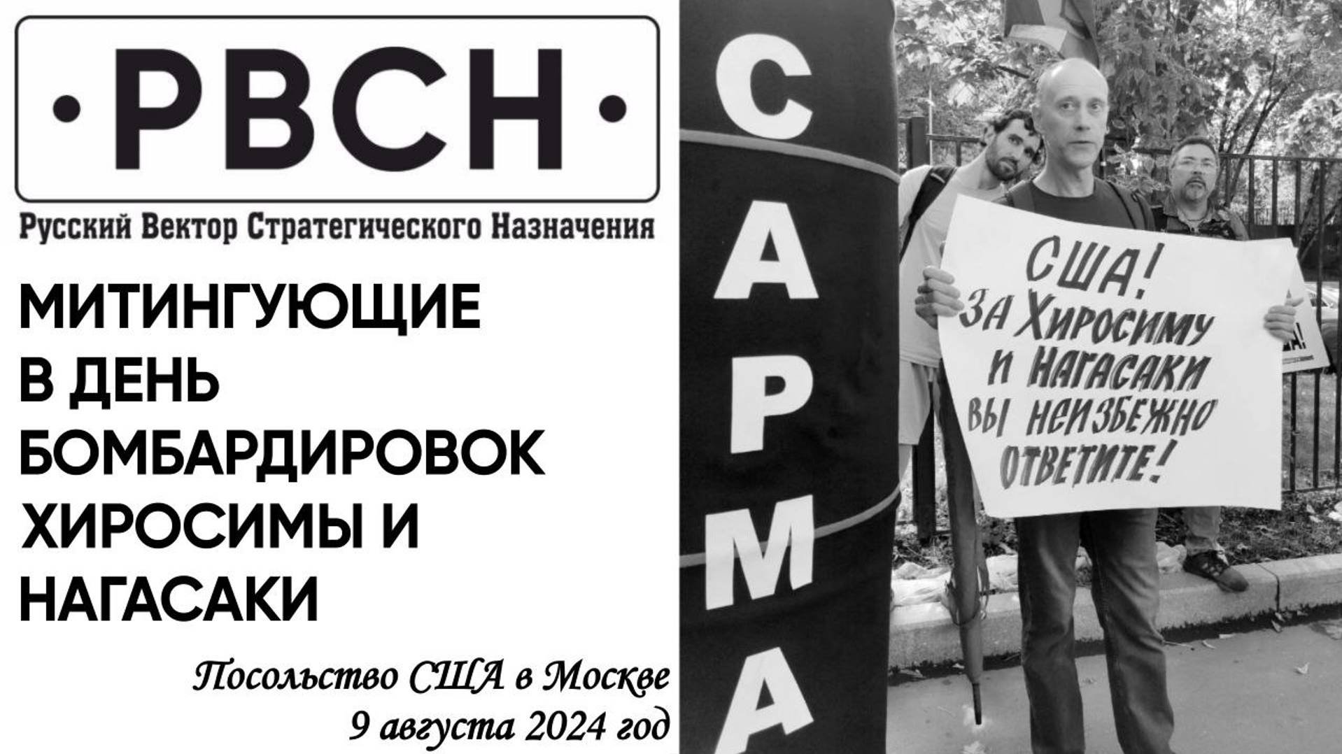 9 августа 2024 года у посольства США в Москве в день атомных бомбардировок Хиросимы и Нагасаки. Корреспондент Информационного Агентства "Русский Вектор Стратегического Назначения" (ИА РВСН) Ольга Бегунова пообщалась с пикетчиками. Подпишитесь на РВСН: https://vk.com/rvsn_na_washington https://t.me/rvsn_na_washington https://dzen.ru/rvsn_na_washington https://rutube.ru/channel/22105991/ https://www.youtube.com/@rvsn_na_vashington https://ok.ru/rvsnnawashington ZИМОРОДОК: https://t.me/zimorodok52 https://vk.com/zimorodok52 @rvsn_na_washington