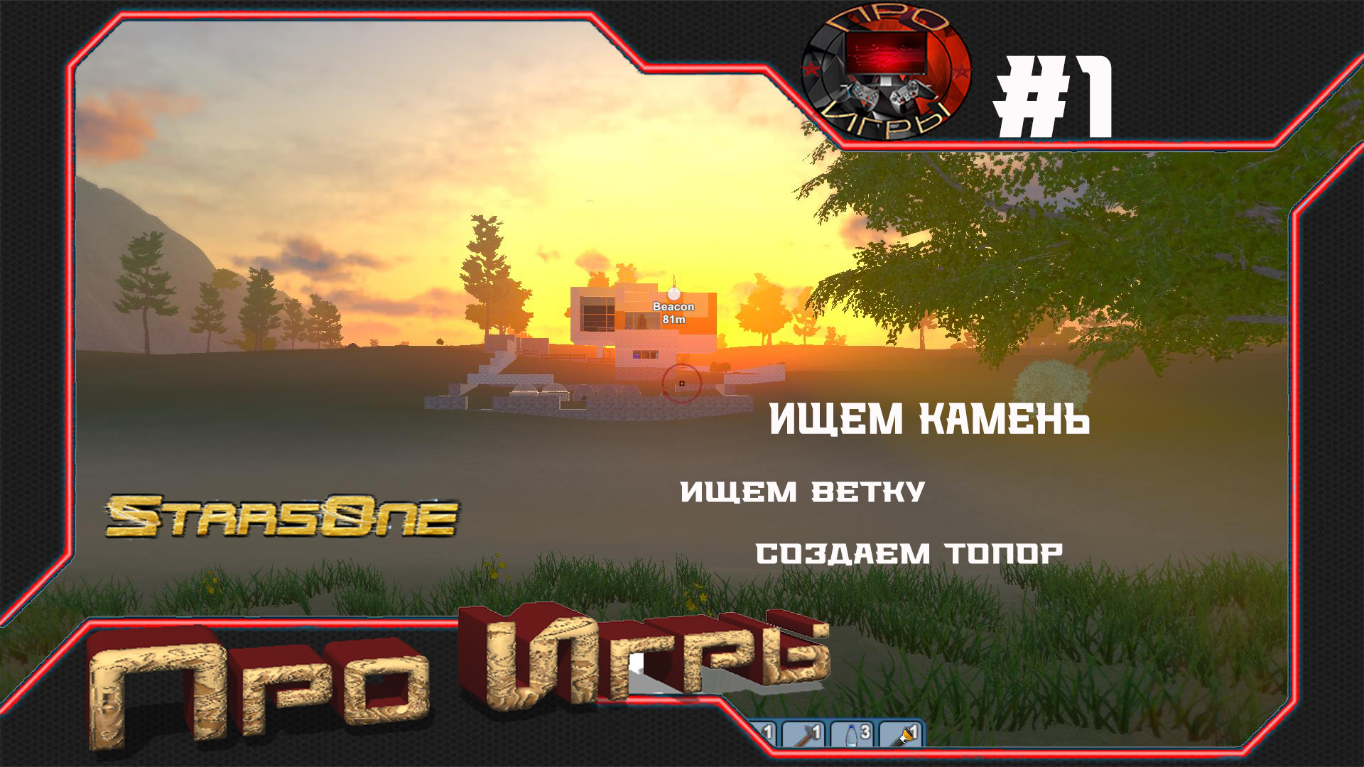 Начинаем игру. Как выбрать место для базы. Как создать каменный топор. Добыча камня. Добыча веток