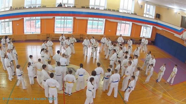 Учебно-тренировочные сборы Киокусинкай каратэ Северо-западного федерального округа 3 ноября 2023 В Санкт Петербурге прошли Учебно-тренировочные сборы СЗФО по каратэ Киокусинкай. Учебно-тренировочные сборы по каратэ Кекусинкай по Северо-Западному Федеральному Округу России проходят тридцатый год подряд. Санкт Петербургской Региональной организации 30 лет. Александр Иванович Танюшкин первый раз приехал в Санкт Петербург на сборы в далёком 1993 по приглашению Аркадия Юрьевича Моторичева. С тех пор, эта славная традиция продолжается и поныне. Большое спасибо всем родителям и низкий поклон за поддержку благих начинаний ваших детей, спасибо что не остались глухи к просьбам ваших детей. Спортсмены били очень разновозрастные. Больше детей в спортзале – меньше на улице! Сборы проводил Танюшкин Александр Иванович известный советский и российский мастер каратэ стиля Кёкусинкай, самый первый обладатель 8 дана в России (IFK), один из первых инициаторов развития карате в СССР и России. Президент-основатель Федерации Кёкусинкай России, судья международной категории по ката, председатель аттестационной комиссии ФКР, заслуженный тренер России,
