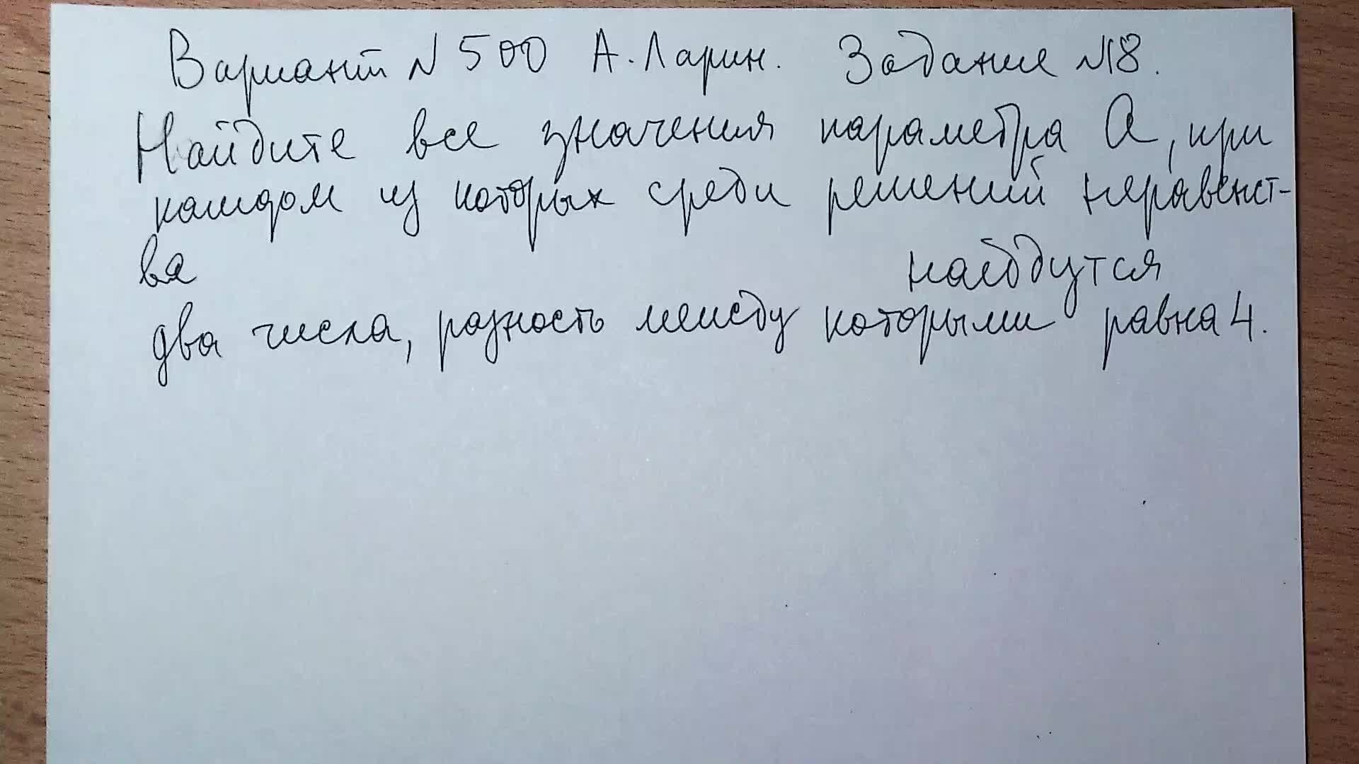 Вариант № 500 А. Ларин. Задание №18. Иррациональное неравенство с параметром.
