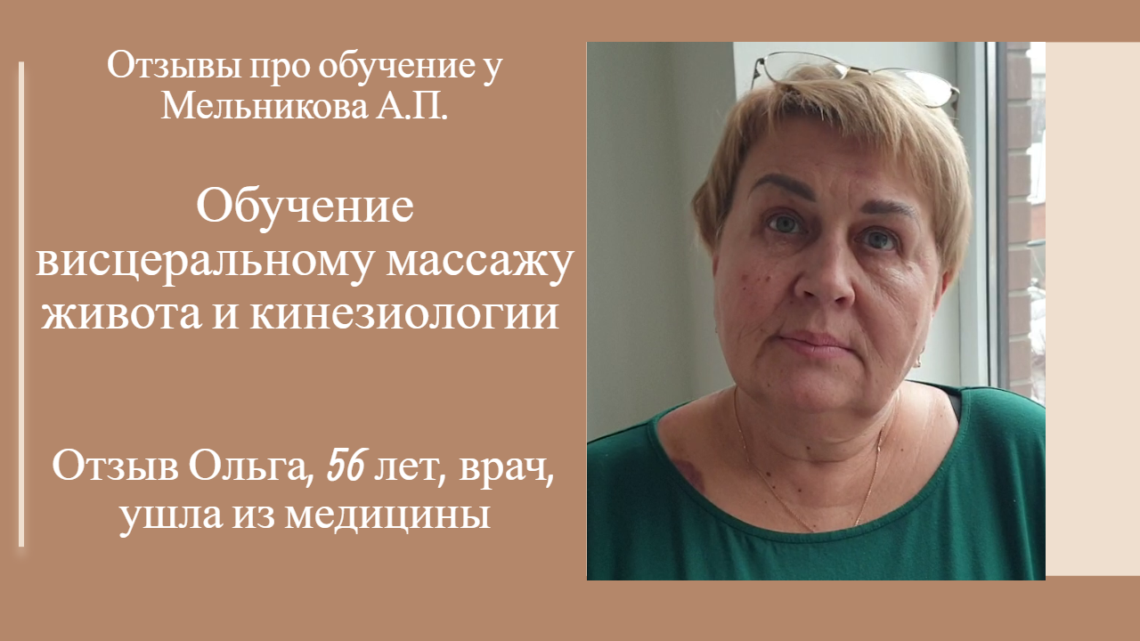 Обучение висцеральному массажу и кинезиологии. Отзыв. Ольга, 56 лет, врач, ушла из медицины