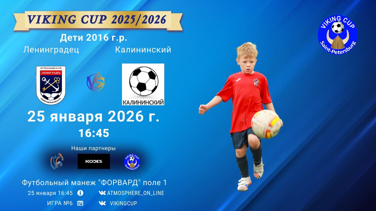 VIKING CUP среди команд 2016 г.р. (U10), Поле 1 25 января 2026 САНКТ-ПЕТЕРБУРГ, ФЦ "Форвард" Ленинградец-Калининский/VIKING CUP, Игра №6, 25-01-2026 16:45