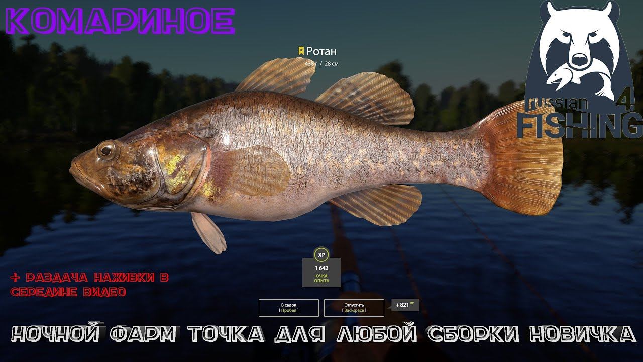 Русская Рыбалка 4. Комариное ночная точка+сборка новичкам для фарма.