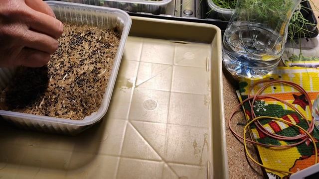 Посеяла японскую капусту, увлажнила семена брокколи, выставила горчицу под фитолампу