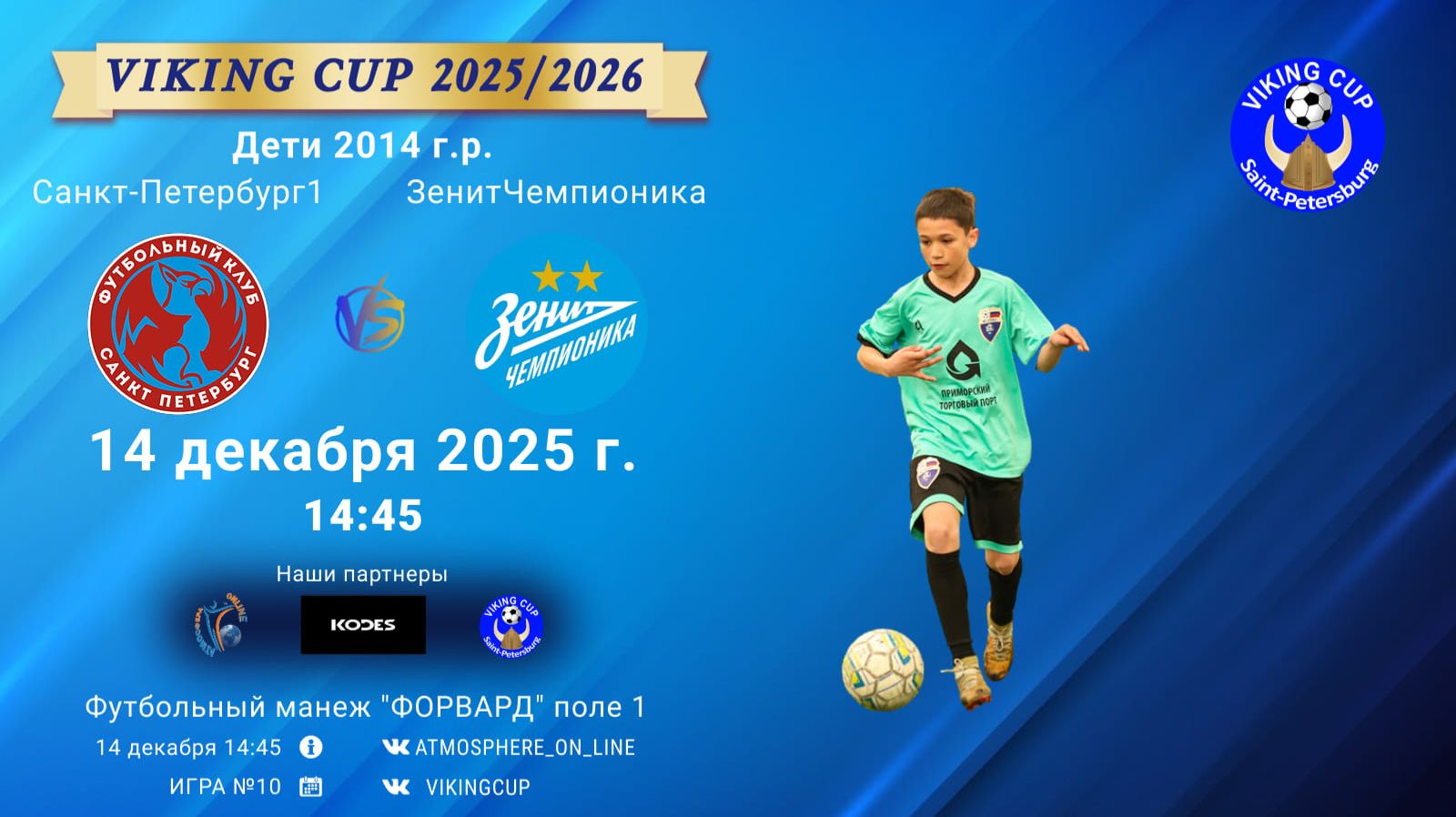 VIKING CUP среди команд 2014 г.р. (U11), Поле 1 14 декабря 2025 САНКТ-ПЕТЕРБУРГ, ФЦ "Форвард" ФК "СанктПетербург1" - ФК "ЗенитЧемпионика"/VIKING CUP, Игра №10, 14-12-2025 14:45