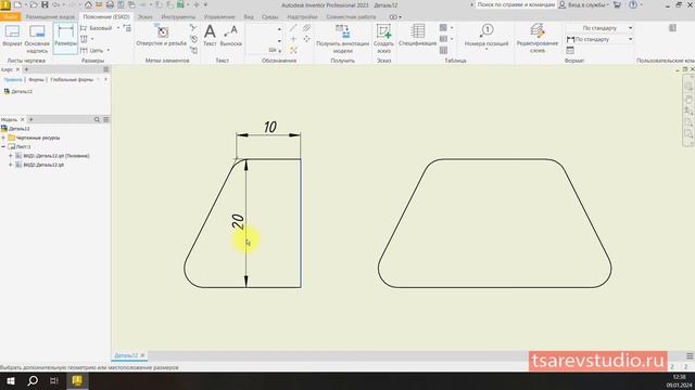 Inventor. Как поставить размер до точки пересечения на скругленных углах_