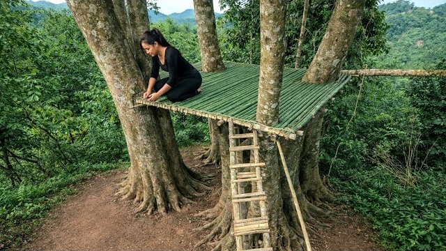 Построила домик на дереве высоко в горах и целыми днями наслаждалась природой. Бушкрафт