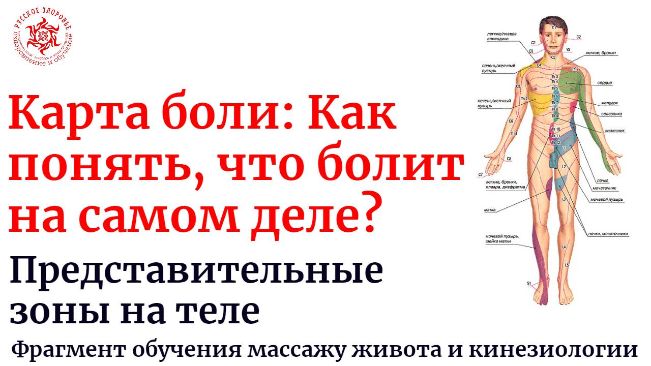 ✅ ЗАРЕГИСТРИРОВАТЬСЯ НА КУРСЫ ОБУЧЕНИЯ ПРИКЛАДНОЙ КИНЕЗИОЛОГИИ И МАССАЖУ ВНУТРЕННИХ ОРГАНОВ (ЖИВОТА) СЕЙЧАС ПО ССЫЛКЕ https://ruszdrava.ru Подробно в видео Так называемые представительные, или рефлекторные, зоны внутренних органов на теле человека — это области, которые реагируют на патологию в связанном с ними органе. Реакция может проявляться в виде болезненности, повышенной чувствительности или кожных высыпаний. А.Т. Огулов обобщил эти данные, создав схему, которая включает в себя различные типы рефлекторных связей: канально-меридианальные системы, классические зоны Захарьина-Геда, а также нейролимфатические, нейрососудистые рефлексы и эмпирически обнаруженные стресс-зоны. Механизм работы зон Захарьина-Геда основан на спинальной иннервации: каждый сегмент позвоночника связан нервными волокнами с конкретным внутренним органом и участком кожи. Дисфункция органа может привести к блокированию соответствующего позвонка, который, в свою очередь, сдавливает нерв, усугубляя проблему в органе и вызывая мышечный спазм. Следовательно, восстановление функции органа положительно сказывается и на состоянии позвоночного сегмента. Смотрите подробно в видео про то, как выявить дисфункцию по состоянию тела ✅ ЗАРЕГИСТРИРОВАТЬСЯ НА КУРСЫ ОБУЧЕНИЯ ПРИКЛАДНОЙ КИНЕЗИОЛОГИИ И МАССАЖУ ВНУТРЕННИХ ОРГАНОВ (ЖИВОТА) СЕЙЧАС ПО ССЫЛКЕ https://ruszdrava.ru ✅ Связаться с администратором курсов и задать вопросы: +79222160707 ✅Познакомьтесь с кинезиологией и массажем живота бесплатно! Узнать больше про работу с внутренними органами Вы сможете на вебинаре! https://ruszdrava.ru/ Лечение правильным висцеральным массажем живота и кинезиологией, медовым, антицеллюлитным массажем живота и боков и вакуумными банками в Екатеринбурге для похудения, при остеохондрозе, запоре, простатите, проблемах желчного пузыря и многих других недугах. На сеансе Вы можете получить уроки обучения методу “Висцеральный массаж живота руками” как по Огулову А.Т. , так и по методикам других экспертов висцерального массажа живота - для обучения самостоятельно с нуля. Предоставляем в регионе услуги висцерального массажа живота с 2005 года, 14 лет официальной работы как представительства Академии висцерального массажа живота проф. Огулова А.Т. : услуги и обучение. Не откладывайте “на потом”, становитесь здоровым сейчас ! Записывайтесь на консультацию в Екатеринбурге +79222095238. Сайт о наших услугах http://prozdorovie.pro ✅ Присоединиться к чату живого общения по оздоровлению в Телеграм: https://t.me/VisceralHealth ✅ Присоединиться в инстаграм: https://www.instagram.com/vladimir_seryodkin_prozdorovie/ ✅ Больше информации www.prozdorovie.pro ✅ Присоединяйтесь к нашей группе в ВК: https://vk.com/prozdorovie_pro ✅ Присоединяйтесь к нашему ютуб каналу: https://www.youtube.com/channel/UCYejUQ6KfkvOOyBm14uJVkw
