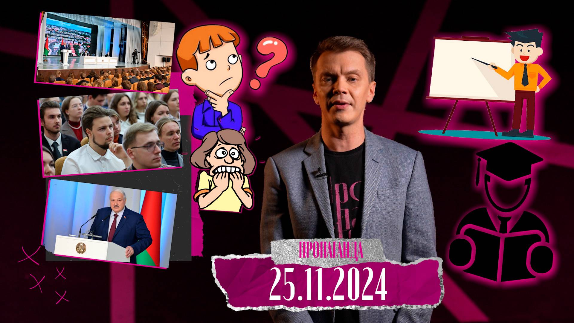 В новом выпуске авторского проекта политического обозревателя ОНТ Игоря Тура "Пропаганда": (25.11.2024): - любимые мероприятия Главы государства от президентского пула журналистов; - про острые вопросы – почему они не звучат; - какие слова Главы государства особенно важны для молодежи; - как должен работать нормальный диалог с населением глаза в глаза; - почему в августе 2020-го, в разгар попытки госпереворота, в Беларуси отключался Интернет; - зачем А. Лукашенко проводит встречи с белорусской молодежью; - вопросы, которые могли бы прозвучать в адрес Президента, но не прозвучали; - о "нафталиновых" мероприятиях; - почему не стоит вмешиваться в процесс общения Главы государства со своей молодежью; - молодежь, государственная точка зрения и честный ответ А. Лукашенко; - о перераспределение полномочий от Президента сверху вниз на всю вертикаль власти; - какими видит Александр Лукашенко перспективы МГЛУ; - какие президентские задачи Президент давно выполнил; - Игорь Тур – почему СМИ не являются четвертой властью.