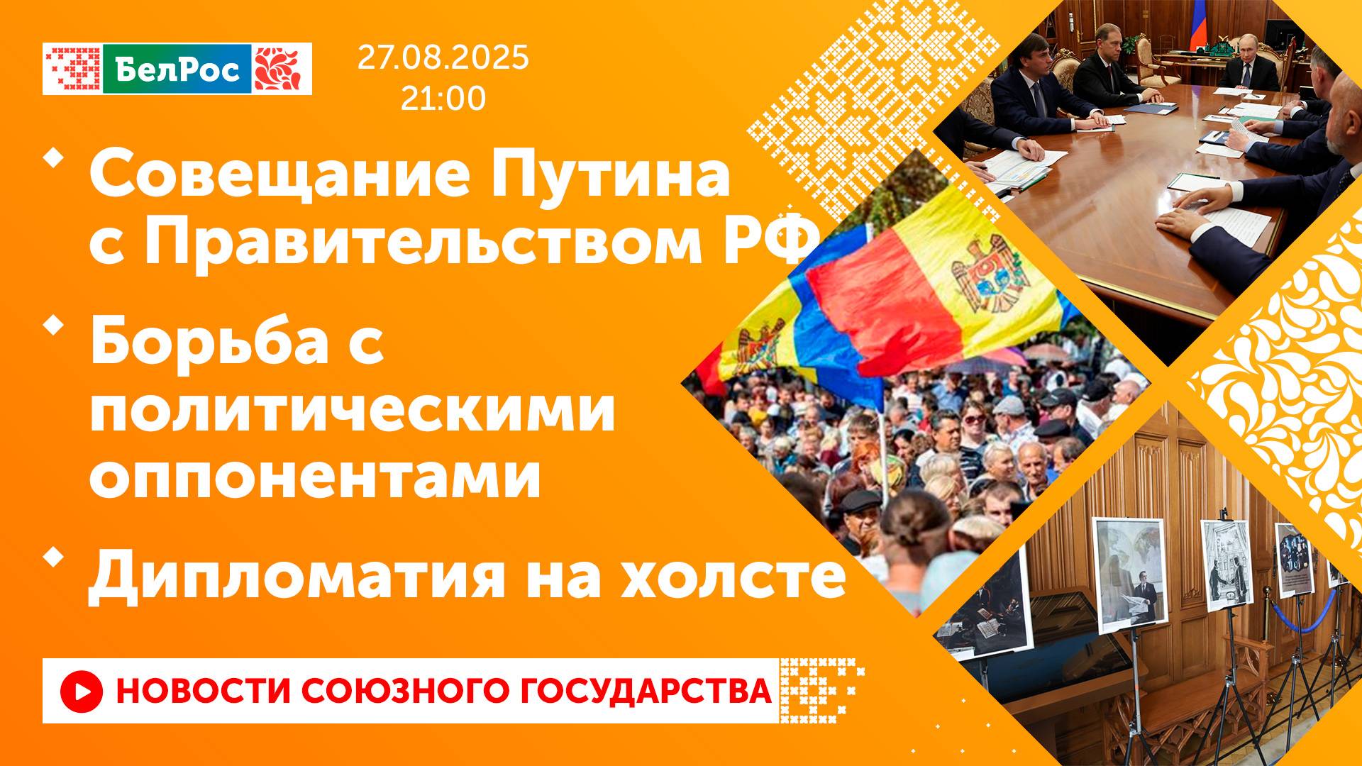 Закадровый текст озвучивает *ИИ Антон* Новости 27.08.2025 на 21:00 - Министр просвещения России доложил Владимиру Путину о готовности к новому учебному году. - Министр экономического развития России доложил Владимир Путину об итогах летнего туристического сезона для россиян. - Владимир Путин провёл совещание с членами Правительства России. - Обстановка в Молдове накаляется в преддверии парламентских выборов. - Молдавская диаспора призывает ЦИК страны увеличить число участков для голосования в России. - Власти Киргизии официально признали российскую альпинистку пропавшей без вести. - В Москве подвели итоги международного творческого конкурса "Архитектура дипломатии". Смотрите главные новости Союзного государства на телеканале БелРос. Ссылки на наши соц. сети Сайт: http://belros.tv/ Telegram: https://t.me/belrostv Одноклассники: https://ok.ru/group/55657426976918 ВКонтакте: https://vk.com/belrostv TikTok: https://www.tiktok.com/@belros_tv?_t=... RuTube: https://rutube.ru/channel/23501830/ Яндекс. Дзен: https://zen.yandex.ru/belrostvv Наши подкасты на Яндекс. Музыке: https://music.yandex.ru/album/25615251 #главныеновости #новостисегодня #СоюзноеГосударство
