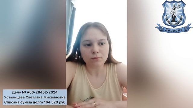 Дело № А60-28452-2024 Устьянцева Светлана Михайловна Списана сумма долга 164 520 руб. Списание кредитов и долгов! Банкротство физических лиц! 🤝 Давайте знакомиться❗ ⚡Мы - Юридическая Компания "Доверие"! ✅ Списали более 100 000 000 рублей задолженностей ✅ 30 000 выигранных судебных дел; ✅ 18 филиалов на территории РФ и отдел дистанционной юридической помощи; ✅ 9 лет мы законно освобождаем от долгов и кредитов ✅ 5000 счастливых клиентов. ✅ 💯% гарантия списания долга, прописанная в договоре 💼 Оказываем процедуру полностью под ключ, с гарантией прописанной в договоре❗ ⚡Бесплатная консультация: ☎ 8(800)775-24-43; 🌐 https://doverie2007.ru/ и 🟦 https://vk.com/doverie_ekb_07 💯% поможем и Вам!