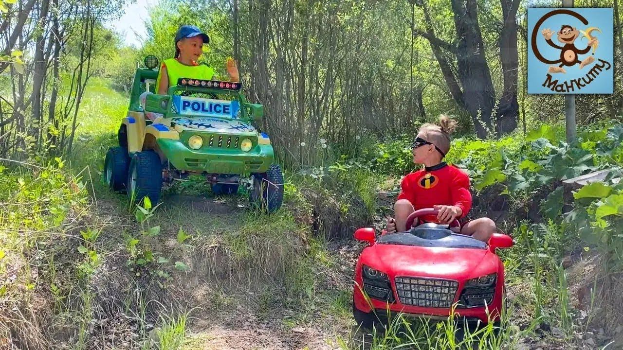 Дети и Машина. Манкиту играют - полицейская машина, красная машинка. Манкиту Истории