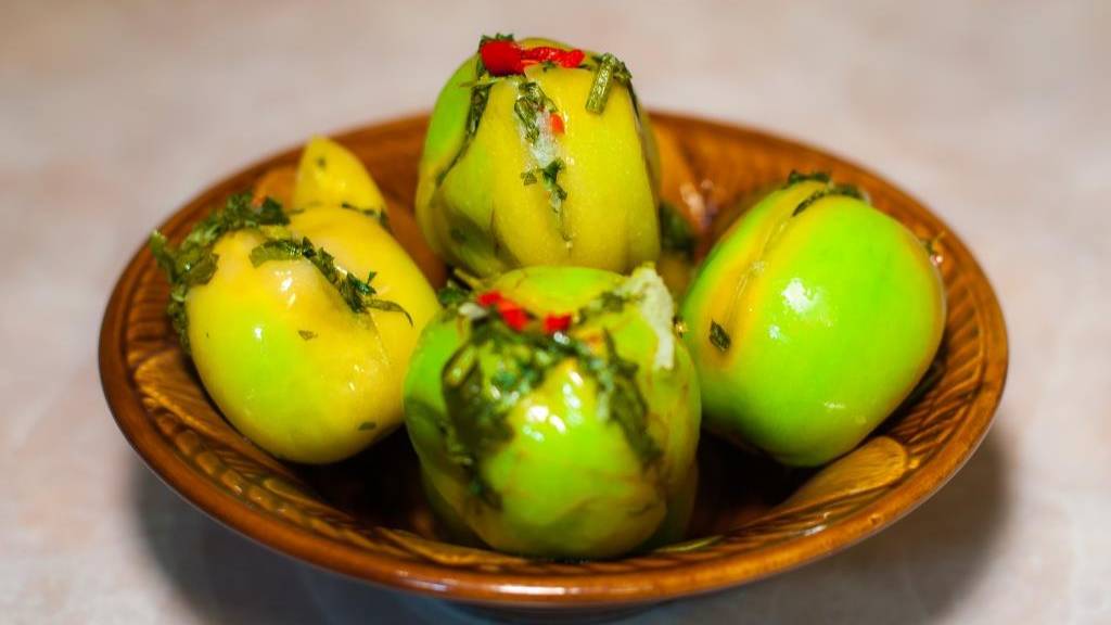 Соленые фаршированные зеленые помидоры
