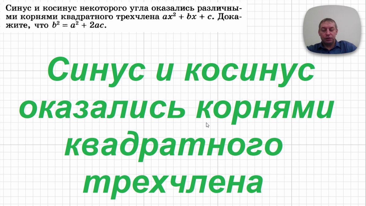 День 127-й. Ну наконец-то синусы и косинусы появились... В этой задаче они являются корнями квадратного трехчлена. И что-то нужно доказать ещё ) Для понимания решения нужны, как ни странно, знания 8-го класса, не более )