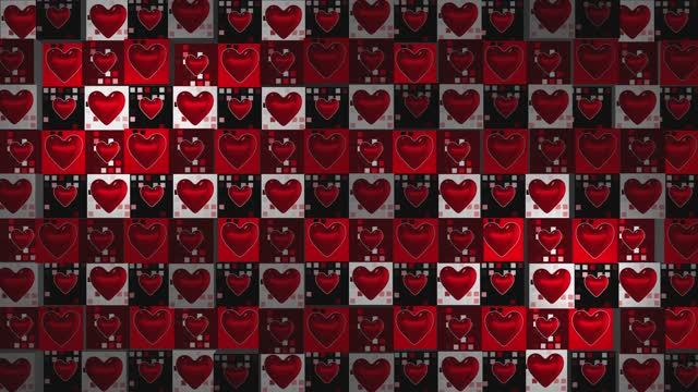 Цифровой фон с сердцами - волна нейросети. Бесплатное оформление. Структура ИИ. Анимация в 4K.