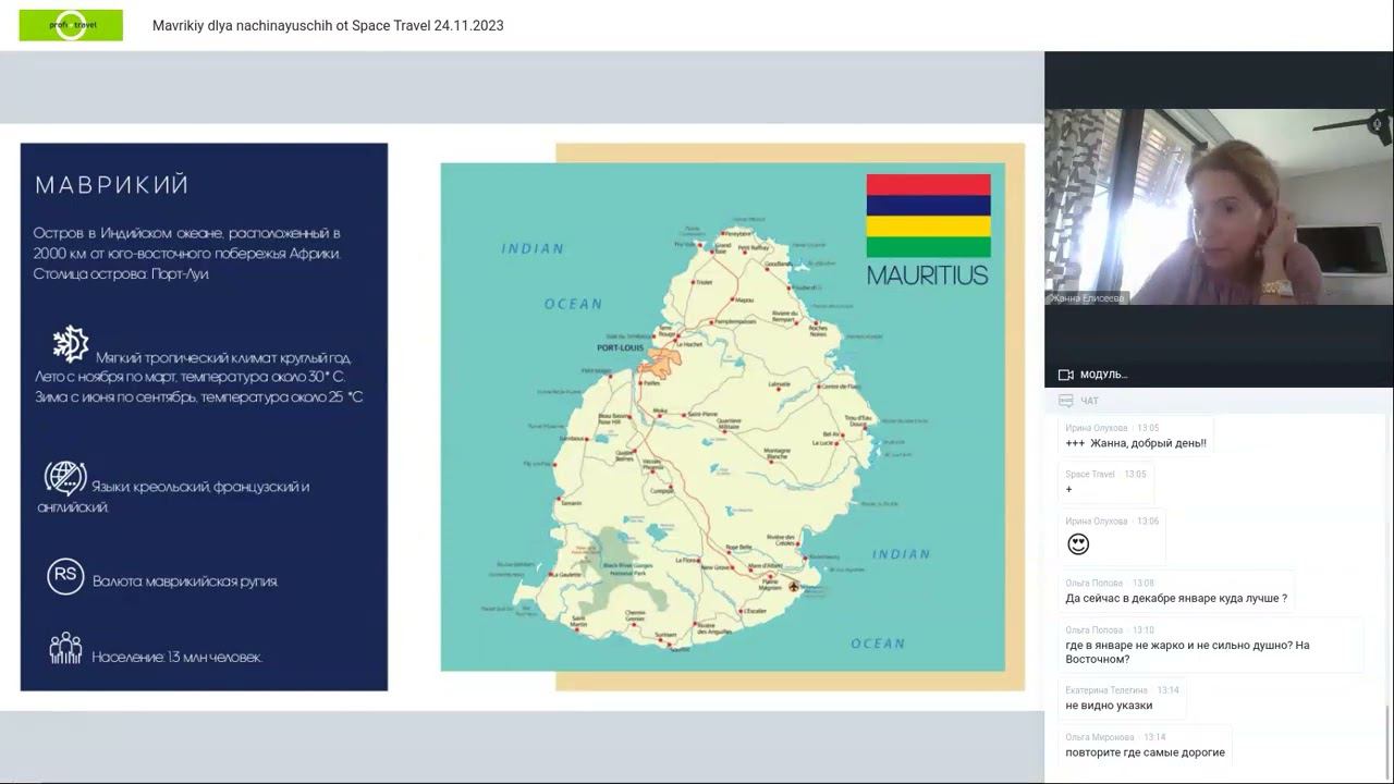 ⚡ Приглашаем вас ознакомиться с информационно-обучающим вебинаром по направлению Маврикий. Дата проведения: 24 ноября 2023 Спикеры вебинара: – Менеджер по работе с ключевыми клиентами Компании Space Travel Марина Калинина. – Менеджер группы стран "Экзотика" Компании Space Travel Ольга Свириденко – Представитель принимающей компании Luxe Voyage Жанна Елисеева ⏰ Тайм код: 00:02:40 Маврикий – сезон для отдыха активного и пассивного 00:35:00 Приветствие от менеджера по продаже компании Space Travel - план вебинара 00:36:30 Полетная программа 00:40:30 Правила въезда 00:43:35 Когда лучше ехать отдыхать на Маврикий и какое побережье выбрать для отдыха 01:20:00 Обзор отелей 4* на Маврикии: отели для взрослых, отели приоритетные для отдыха с детьми, отели рядом с инфраструктурой, отели с лучшими пляжами 01:38:30 Концепция работы Компании Space Travel Многопрофильный туроператор Space Travel Контактный телефон: +7 (495) 989-2000 E-mail: sales@spacetravel.ru www.space-travel.ru ️ Подписывайтесь на нас в Telegram - мы разбираемся! Канал с лучшими предложениями https://t.me/spacetravelnew Для Турагентов https://t.me/spacetrmow Вебинары для турагентов https://t.me/spacewebinar ProfTourism - авторский канал Артура Мурадяна о туризме https://t.me/neprotourism VK https://vk.com/spacetravel_ru Одноклассники https://ok.ru/group/70000002719625 Яндекс Дзен по Ближнему Востоку https://dzen.ru/id/6474d08d25ac106188ff727e Яндекс Дзен по Индийскому океану https://dzen.ru/id/6474e0c7a172fd58e7eb5c2d Забронировать тур в франчайзинговом турагентстве Space Travel в любые страны из всех городов. Чат-бот в Telegram https://t.me/s3team_bot, сайт https://www.s3team.ru #space_travel #отдых #туризм #путешествия #отдыхнаморе #mauritius #маврикий