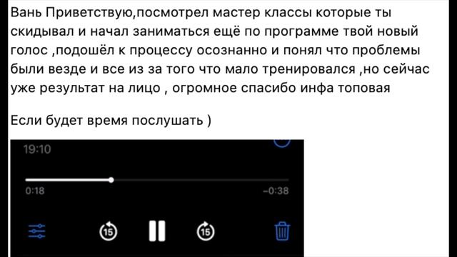 ►►►Мои курсы вокала - https://ivanradkov.ru/products ►►►Индивидуальное обучение - https://ivanradkov.ru/products/tvoi-novyi-golos Глеб в инстагаме https://www.instagram.com/gk.luciano/ Глеб проработал все мои курсы. Также около полугода мы занимались персонально. На днях он прислал эту запись. ►►►Моя музыка https://ivanra.bandcamp.com/ ►►►Я в Инстаграм: https://www.instagram.com/ivan_radkov88/ ►►► Блог в вк https://vk.com/youcan_sing ►►► Мой телеграм https://t.me/vocalrigor ►►►Я во Вконтакте: https://vk.com/iradkov