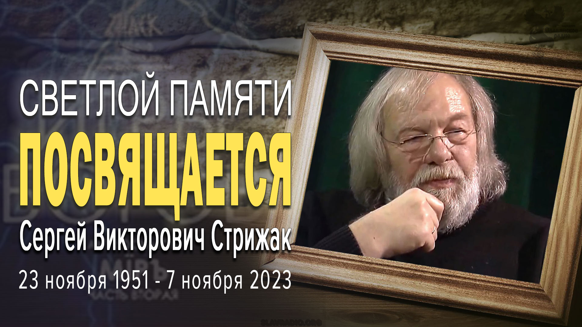 Алексей Орлов, Андрей Ивашко. Сергей Викторович Стрижак: «Очень давно, некогда могущественным богам нравилось играть в игры...». Это фраза из сериала «Игры Богов * Сергей Викторович Стрижак — режиссёр-документалист родился 23 ноября 1951 года в городе Севастополь. Окончил жизненный путь 7 ноября 2023 года. Учился в мастерской Бориса Собейкина. По окончании ВУЗа вернулся в родной Севастополь и без малого 30 лет посвятил театрам. Служил в Севастопольском русском драматическом театре имени Луначарского и драматическом театре имени Лавренёва Черноморского флота России. Сергей Викторович Стрижак поставил около двадцати спектаклей, среди которых: “Мысли” (по произведениям поэтов и композиторов), “Орфей спускается в ад” Т.Уильямса, “Это настоящий скандал, ангел мой!” по пьесе И.Жамиака “Месье Амилькар”, “Плутни Скапена” Ж.Б. Мольера, “Пролетая над гнездом кукушки” К.Кизи, “Старомодная комедия” Арбузова, “Свалка” А.Дударева, “Варавва” М. де Гильдерода, “Игра теней” Ю. Эдлиса, “Мышеловка” А. Критси и другие. Сергей Викторович окончил режиссёрское отделение ЛГИКа им. Крупской (мастерская Б. Сапегина). Владел всеми театральными профессиями, являлся одним из основателей и экс-режиссёром шоу-театра “MUSIC-EX”. Работал преподавателем Севастопольского филиала Санкт-Петербургского гуманитарного университета профсоюзов. С 2005 года - директор “Частной Русской библиотеки Севастополя” на общественных началах. Вначале 2000-ых Сергей Викторович обратился к документалистике. Его первая многосерийная документальная лента «Игры богов» * увидела свет в 2008 году. Цикл передач выходил последовательно на протяжении двух лет и довольно быстро стал популярным. Акт 1. Театр (2002) Акт 2. Артисты и Зрители (2002) Акт 3. Эстетика (2003) Акт 4. Общение. Музыка. Слово (2004) Акт 5. Правильное образование (2005/2006) Акт 6. Славянские привычки (2007) Акт 7. Живой огонь (2008): Часть 1. Вера Часть 2. Правда и кривда Часть 3. Я и Мы Часть 4. Азбучные Истины Акт 8. Мїръ * 04.02.2014 решением Верховного Суда Башкортостана, РФ, сериал Сергея Стрижака «ИГРЫ БОГОВ» признан экстремистским и запрещен к показу на всей территории Российской Федерации. В 2013 году начал съёмки фильма «Крым. Руское море» (Руское с одним С). Также снимал яркие и злободневные короткие видео ролики о своём отношении к происходящим в жизни событиям. Ещё одно интересное высказывание Сергея о своём пути развития и роста, прозвучавшее в одном из интервью, как ответ на обвинение в том, что он засланный сектант-саентолог: «Да, я действительно посвятил несколько лет сайентологии и снял фильм «Сайентологи о сайентологии» по заказу сайентологов Свободной зоны. Это был очень интересный период в моей жизни и с помощью инструментов снт я успешно решил множество личных проблем. Также я изучал ноледжизм Уолтера, «Анализ ума» Стивенса, многие работы Филберта, Фанча, Гурджиева, Блаватской, Мессинга, Ошо, христианство, буддизм, индийские веды, классическую психологию и конечно же, Кастанеду. Сейчас я изучаю русские веды. Что касается пересказа сайентологических идей, то правильнее было бы назвать это пересказом ведической мудрости, так как философия снт основана в первую очередь на ведах и в чуть меньшей степени на буддизме. Впрочем, это близкие философии. Хаббард разработал всего лишь технологию использования этих знаний для современного челове