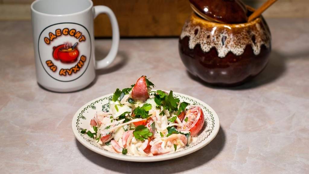 Салат помидор огурец лук с майонезом