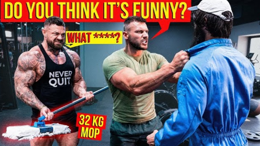 Злые бодибилдеры против 32кг швабры. Уборщик Анатолий уничтожает качков.