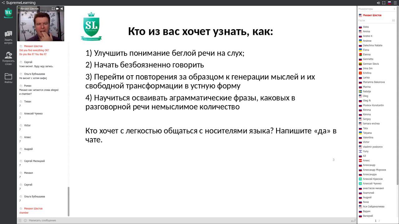 В уроке рассматриваются вопросы: 1) Улучшить понимание беглой речи на слух; 2) Начать безбоязненно говорить 3) Перейти от повторения за образцом к генерации мыслей и их свободной трансформации в устную форму 4) Научиться осваивать аграмматические фразы, каковых в разговорной речи немыслимое количество Запись на курс "Разговорная практика" по адресу: https://shestovsystems.com/practice/ КОЛИЧЕСТВО МЕСТ ОГРАНИЧЕНО!