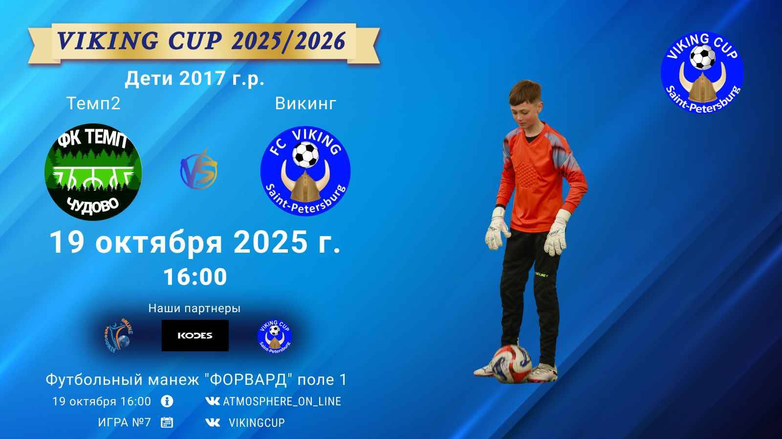 VIKING CUP среди команд 2017 г.р. (U8), Поле 1 19 октября 2025 САНКТ-ПЕТЕРБУРГ, ФЦ "Форвард" ФК "Темп2" - ФК "Викинг"/VIKING CUP, Игра №7, 19-10-2025 16:00