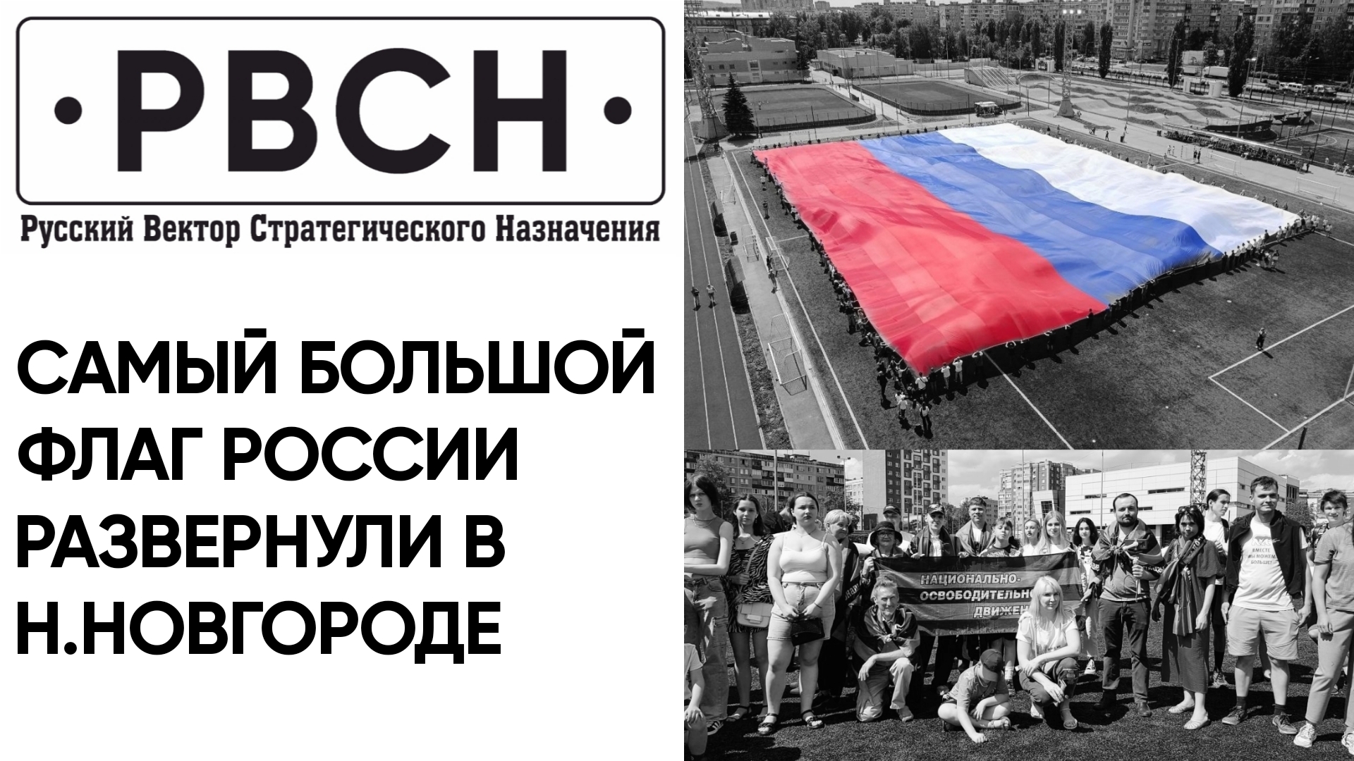 В Нижнем Новгороде развернули самый большой российский флаг размером 50 на 75 метров, площадью 3750 квадратных метров и исполнили Гимн Российской Федерации. Масштабный флешмоб организовало региональное отделение "Молодой Гвардии Единой России" под руководством Романа Зыкова, объединив различные патриотические силы. Этот триколор молодогвардейцы уже привозили в Нижний Новгород в прошлом году на День флага России. На тот момент его площадь составляла 1500 квадратных метров, после активисты "Молодой Гвардии Единой России" приняли решение увеличить флаг. В канун Дня России в Нижнем Новгороде патриотические силы разного толка объединились и растянули самый большой флаг России и спели Гимн России Роман Зыков - руководитель регионального отделения «Молодой Гвардии Единой России». @rvsn_na_washington rvsn1949@mail.ru - для связи Подпишитесь на РВСН: https://vk.com/rvsn_na_washington https://t.me/rvsn_na_washington https://dzen.ru/rvsn_na_washington https://rutube.ru/channel/22105991/ https://www.youtube.com/@rvsn_na_vashington https://ok.ru/rvsnnawashington ZИМОРОДОК: https://t.me/zimorodok52 https://vk.com/zimorodok52