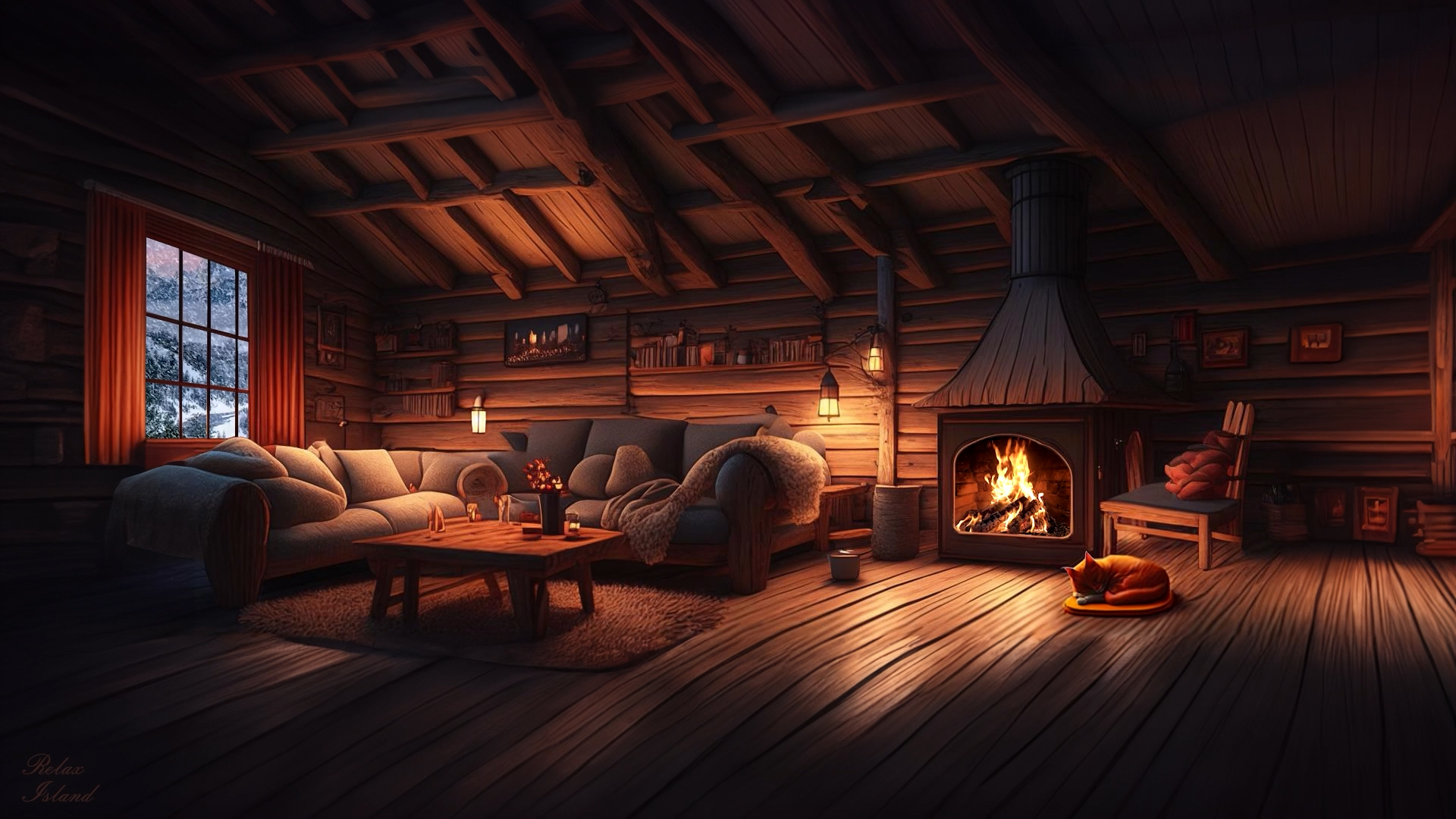 Быстро погрузитесь в САМЫЙ ГЛУБОКИЙ СОН под шум вьюги и метели в хижине с рыжим котенком и камином. За окном шум метели и вьюги, идет снег, дует ветер, на улице мороз, а в доме тепло и уютно, потому что в камине горит огонь и слышно треск дров и спящая кошка на коврике. Это видео с уютным домом и согревающим камином создает атмосферу мира и спокойствия. Оно может помочь расслабить ум и тело, способствуя большей ясности и более уравновешенному и продуктивному состоянию. Концентрация внимания на работе и учебе усиливается многократно, когда вы слушаете шум вьюги и звуки огня из камина. Это достигается за счет того, что заглушаются остальные звуки и мозг начинает концентрироваться на поставленной задаче. Белый шум для сна, учебы, работы, релаксации и медитации. Чарующий шум вьюги и камин в доме для сна и релакса. Смотрите на камин, метель за окном и слушайте расслабляющие звуки огня. Вьюга для сна в уютной гостиной расположенной в хорошем деревянном доме недалеко от леса. #ЗвукВьюги #ШумМетели #Вьюга #ШумВьюги #метель #камин #КрепкийСон #ЗвукКостра #БелыйШум #ЗвукиОгня #ШумКостра #ТрескДров #Медитация #МузыкаДляРелаксации #МузыкаДляМедитации #АСМР #АСМРдляСна При создании ролика были использованы изображения ruDALL-E: https://rudalle.ru/check_kandinsky2/573ac364-e858-4091-8838-6b564847bb65 Видео оригинальное, было создано владельцем канала в 3D программах. © Relax Island 2023. Все права защищены.