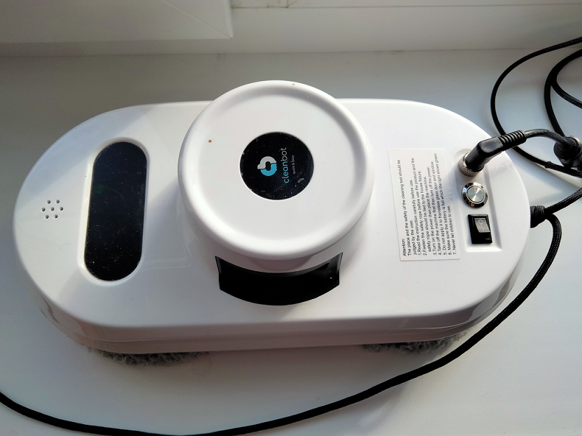 Робот-мойщик окон «Clean Bot» в работе на стеклопакете пластикового окна.